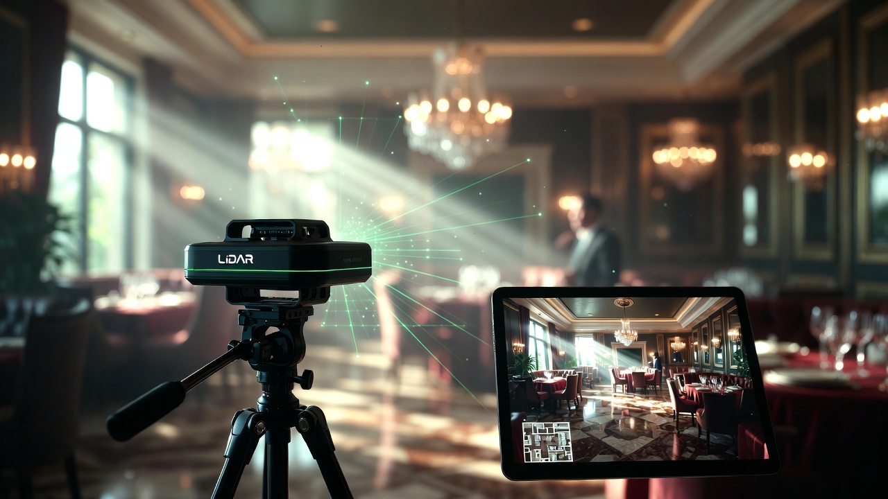Our advanced Lidar scanners create exact spatial measurements of your restaurant layout. This ensures perfect proportions, smooth navigation, and professional-grade accuracy – essential for multi-level venues, outdoor areas, or complex floor plans.