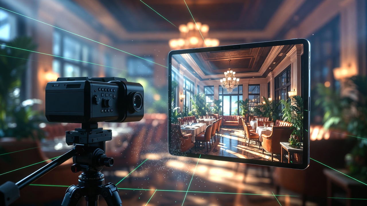 We use industry-leading Matterport Pro3 cameras – the gold standard for restaurant virtual tours. This full-scale 3D scanning system captures every detail with millimeter accuracy, creating dollhouse views, floor plans, and measurement tools. The result: a hyper-realistic digital replica guests can explore freely.